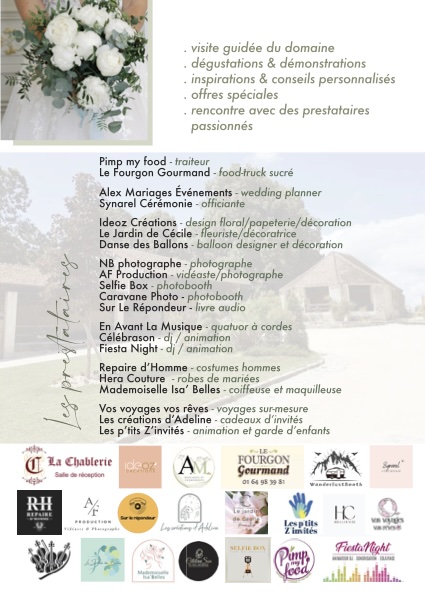 Retrouvez une quinzaine de prestataires partenaires Mariez-Vous !, dont :