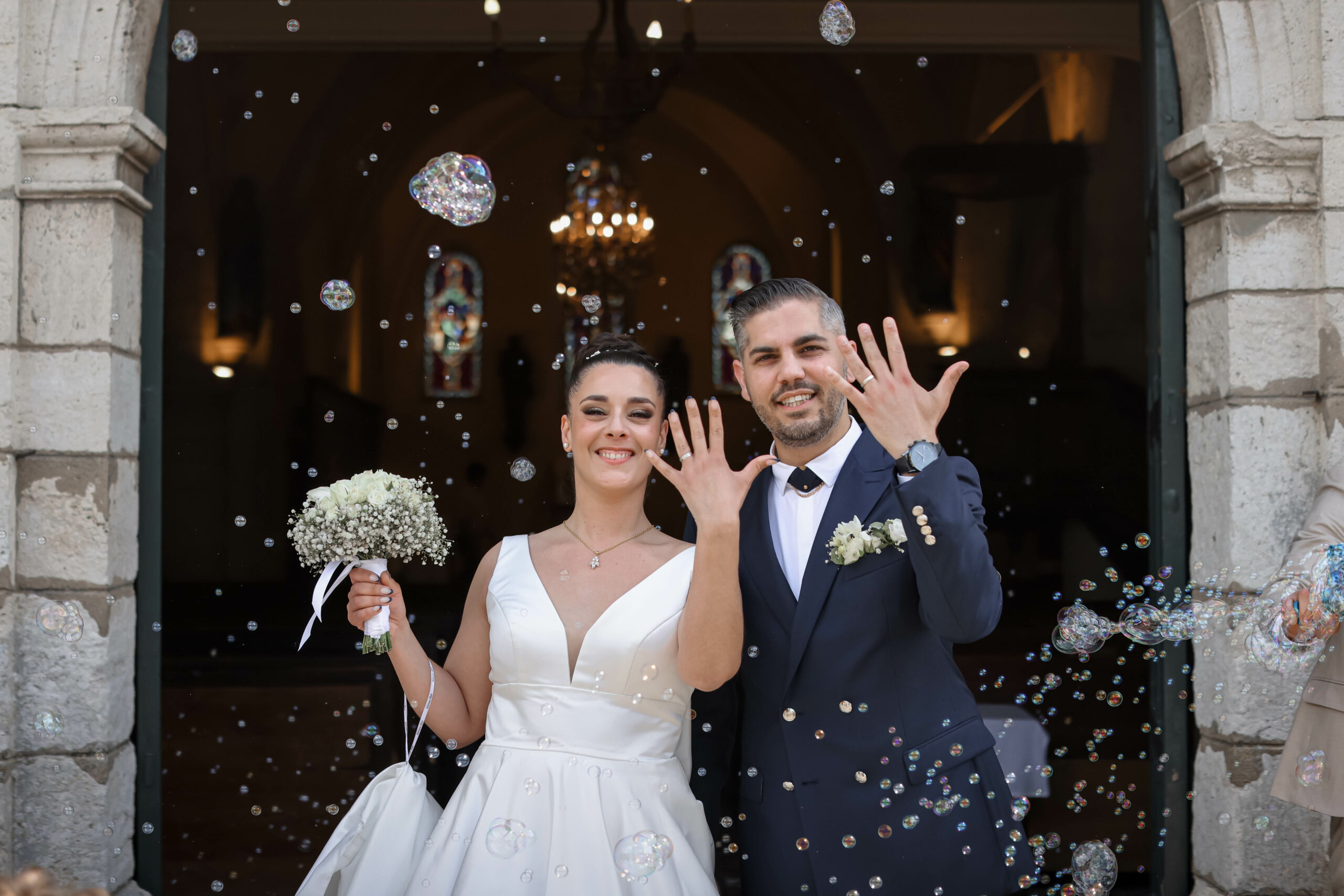 Les personnes qui devaient être présentes à l’église qui en plus était celles qui nous aidaient à faire la préparation du baptême de notre fille que nous avons réalisé le même jour que notre mariage.