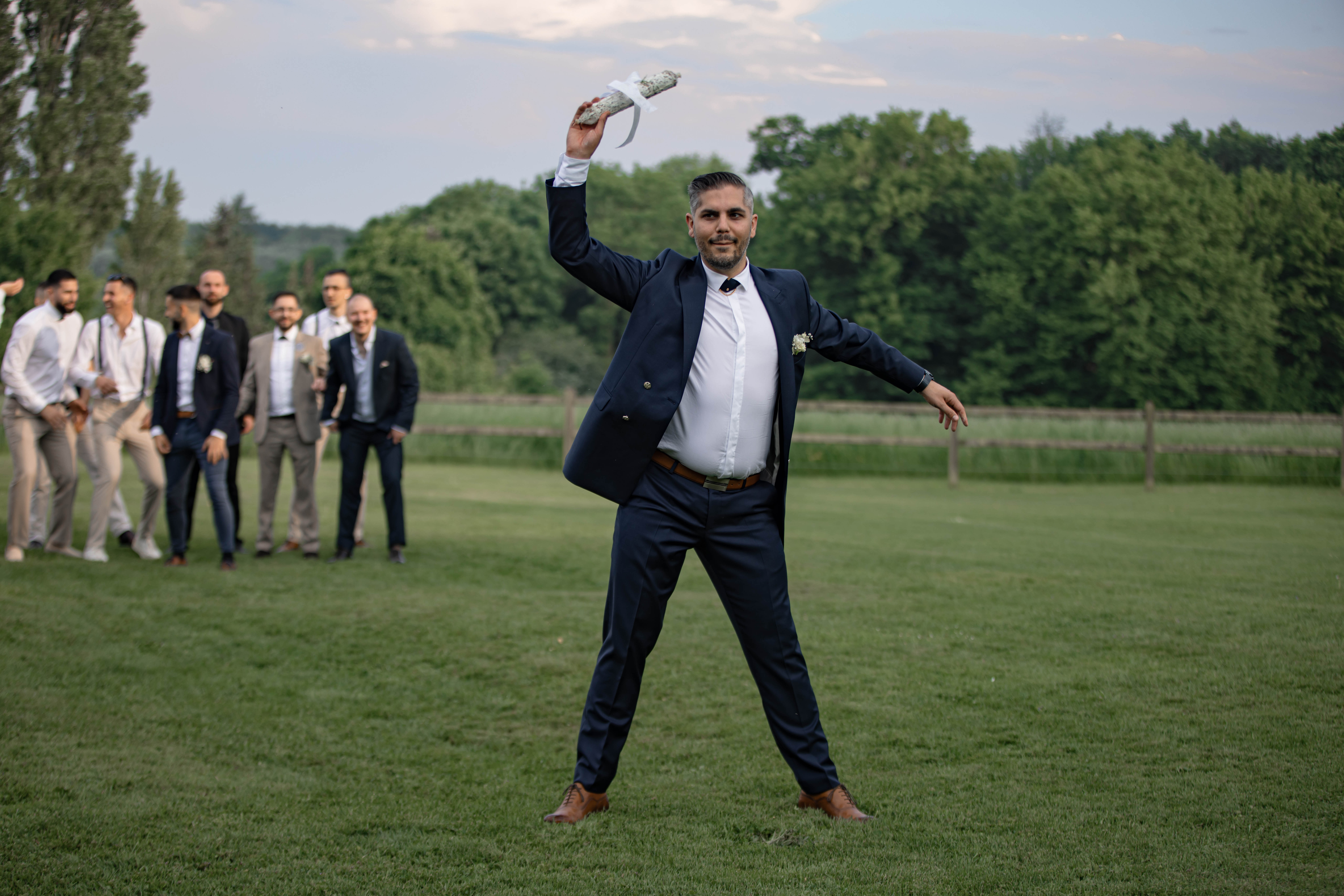 J’ai demandé à mes témoins et garçon d’honneur de me jeter en l’air c’etait assez drôle.