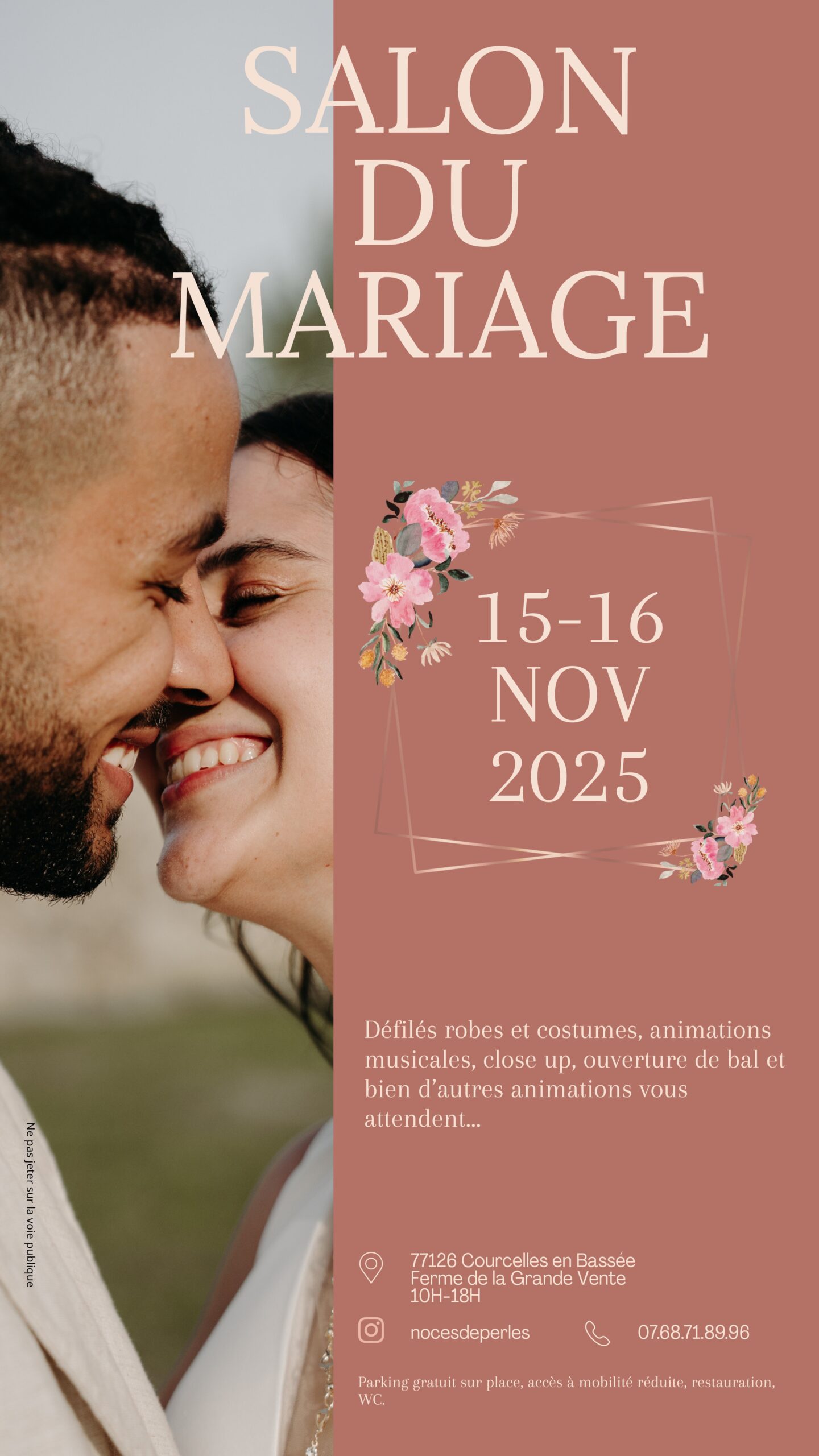 Mariez-Vous ! est partenaire de la 3ème édition du Salon du Mariage Noces de Perles, un événement authentique et chaleureux qui se tiendra les 15 et 16 novembre 2025 à la Ferme de la Grande Vente. Pensé et organisée par Emilie, fondatrice de la société NOCES DE PERLES. Ce salon du mariage valorise les talents locaux de la Seine-et-Marne et propose aux futurs mariés un week-end d’amour, d’inspiration et de convivialité
