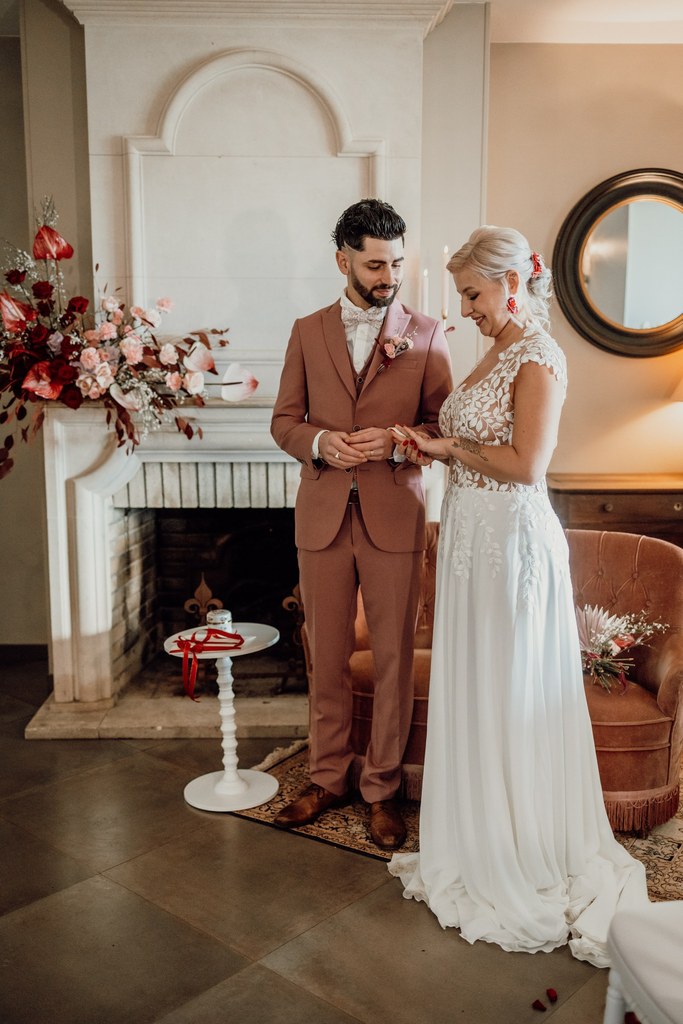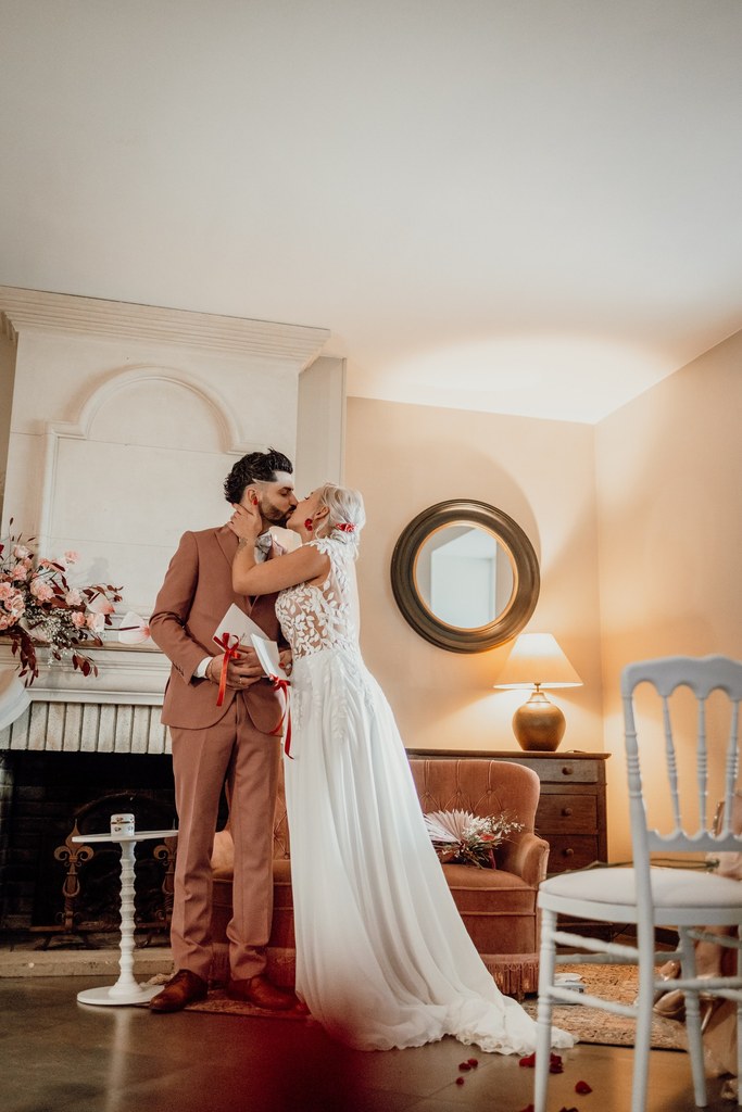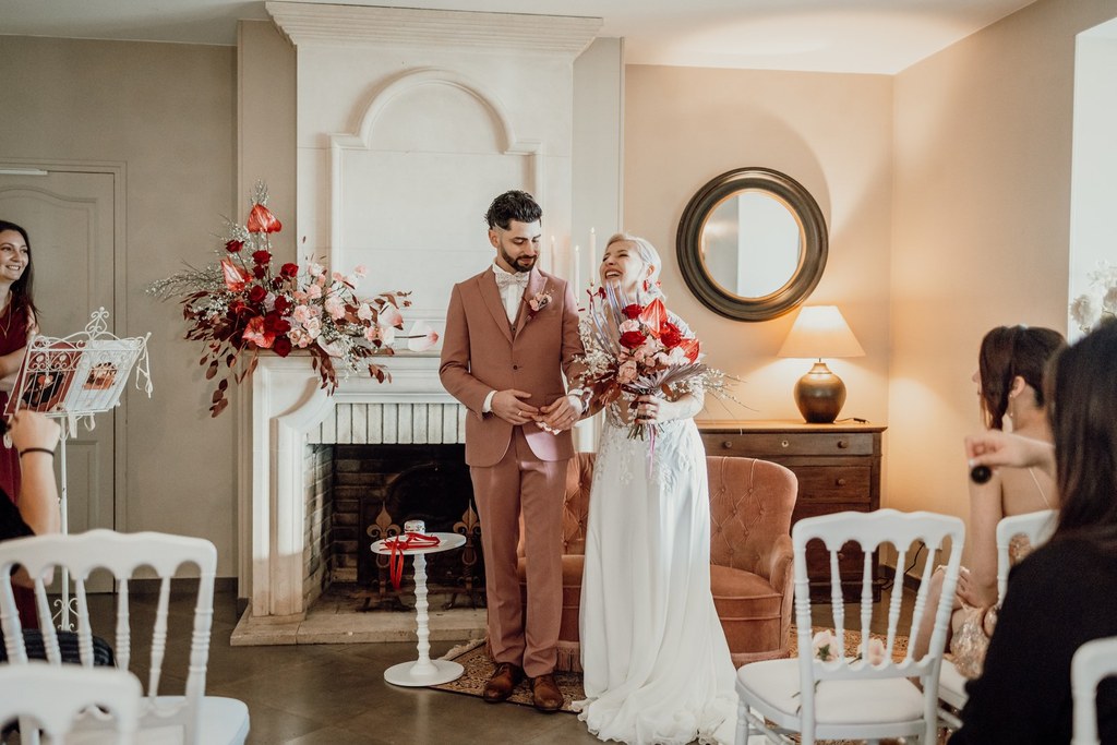 Dans une ambiance rouge terracotta twistée de rose poudré, ce projet collaboratif met en scène un couple complice, des détails inspirants, une scénographie vibrante et des prestataires passionnés issus du réseau Mariez-Vous !